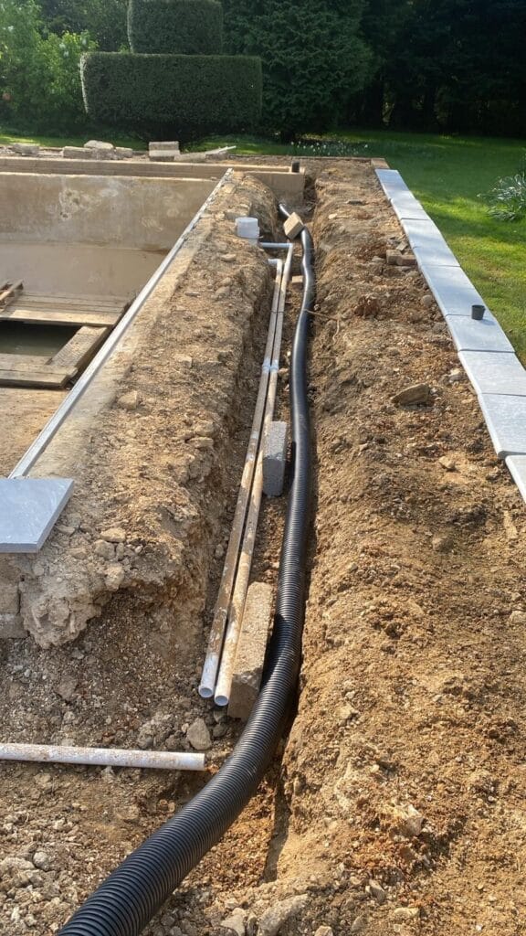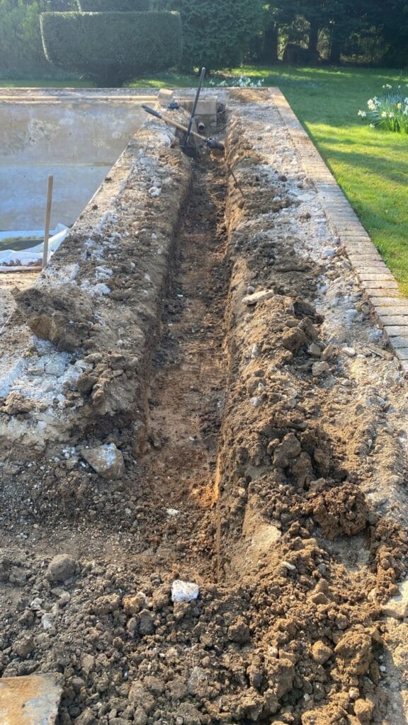 We have been carrying out the regular servicing of this pool for a number of years and our client requested that we look at a full renovation on the pool due to a split in the liner and very old original pipework that was starting to fail.